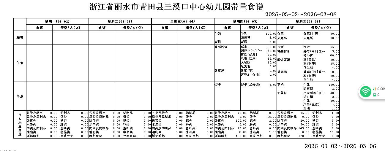 [菜谱]县实验幼三溪口园区学生(2026-03-05至2026-03-06)